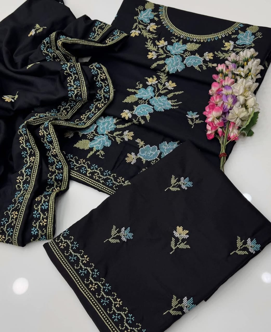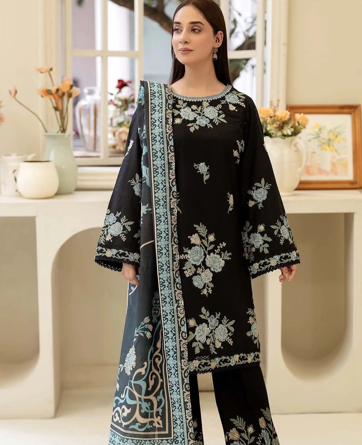 Lawn Cotton Embroidered 3Pc UnStitched Dress.