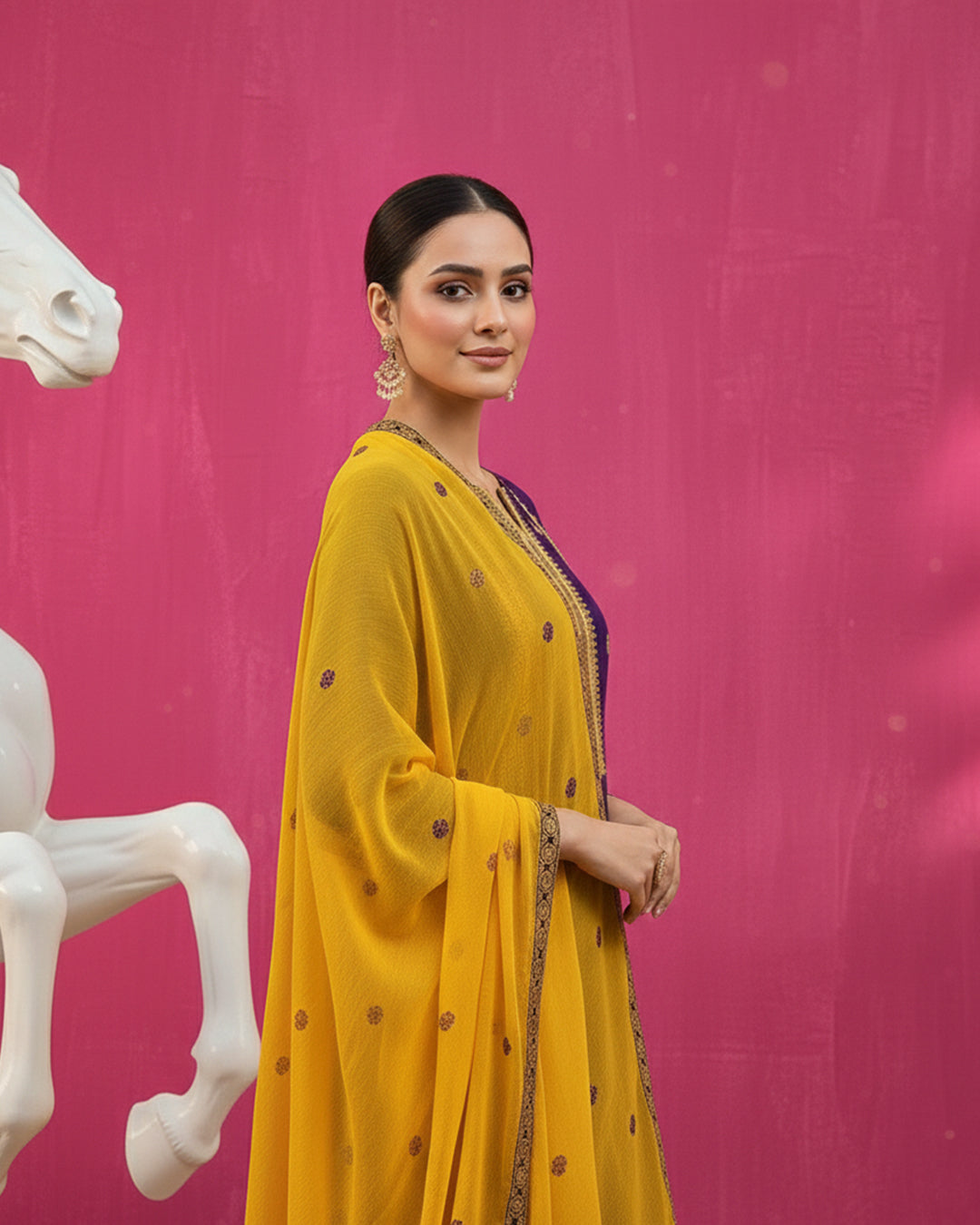 Dupatta: Lightweight Chiffon dupatta adorned with matching CrossStitch Computer embroidery.